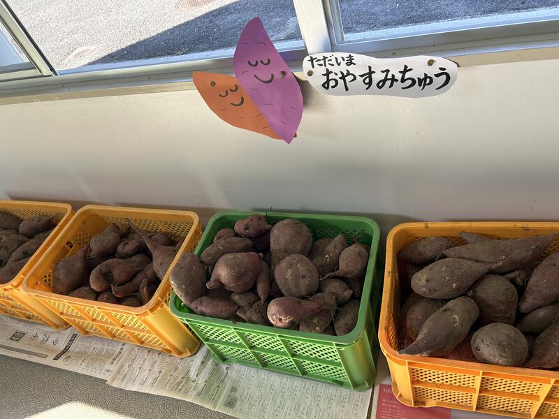 今年のサツマイモは、コンテナ8杯分も収穫できました。追熟させ甘くなるように、収穫祭まで寝かせています。