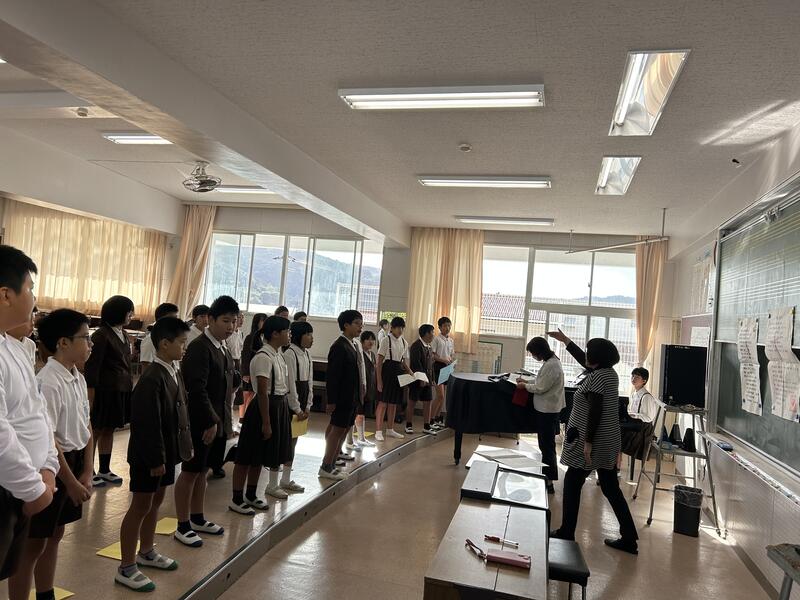 天草郡市音楽会が11月17日(金)に天草市民センター大ホールにて行われます。栖本小学校代表として出場する5・6年生のために、今日は栖本中学校の岩本先生が合唱指導に来てくださいました。岩本先生の分かりやすいご指導のおかげで歌声が大きく変わりました。
