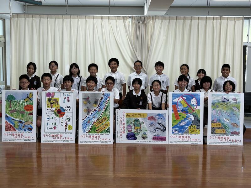 5年生20人が6班に分かれ、それぞれ栖本の豊かな自然や環境を守る環境美化啓発ポスターを描きました。それを栖本地区振興会にて看板にしてくださり、栖本の各地区に設置されました。