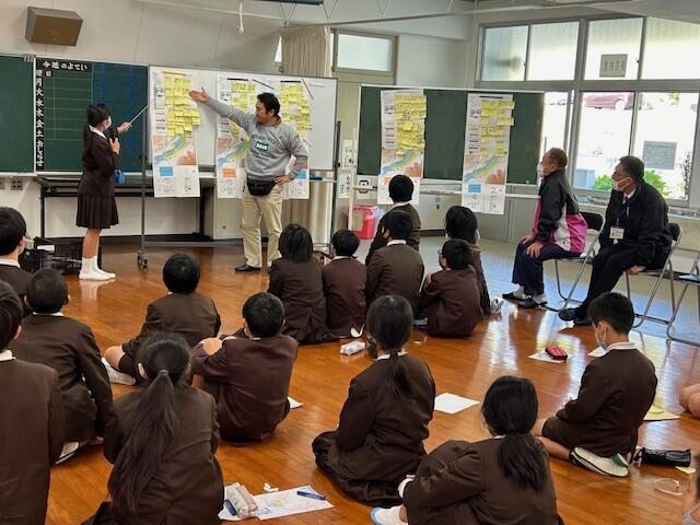 12月19日(火) 3学期に行う森林の学習に先駆け、天草広域本部林務課の方々と、原田製材所の梅田さんにおいでいただき、森林のはたらきや木材について5年生が学習しました。講話の後には木材を使っての製作も行われ、素敵な本立てと椅子が完成しました。