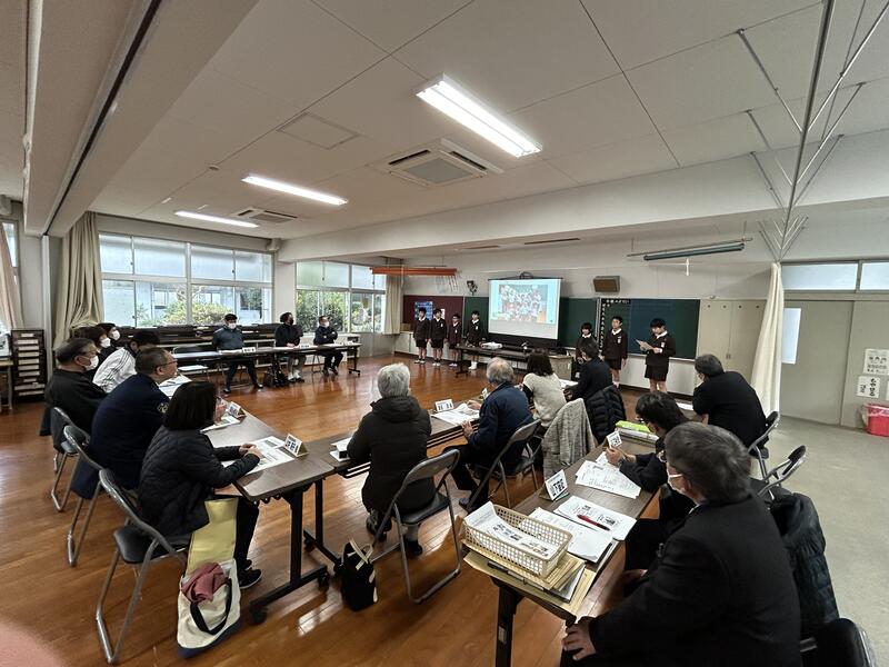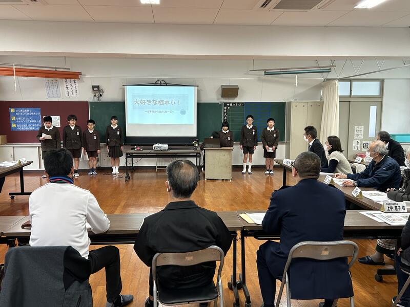 2月9日(金) 学校運営協議会委員の皆様には、まず5校時に全学年の授業を参観していただきました。その後に行われた学校運営協議会の中では、本校代表で6年生が「大好きな栖本小!」と題して、6年間の地域体験学習等について発表しました。