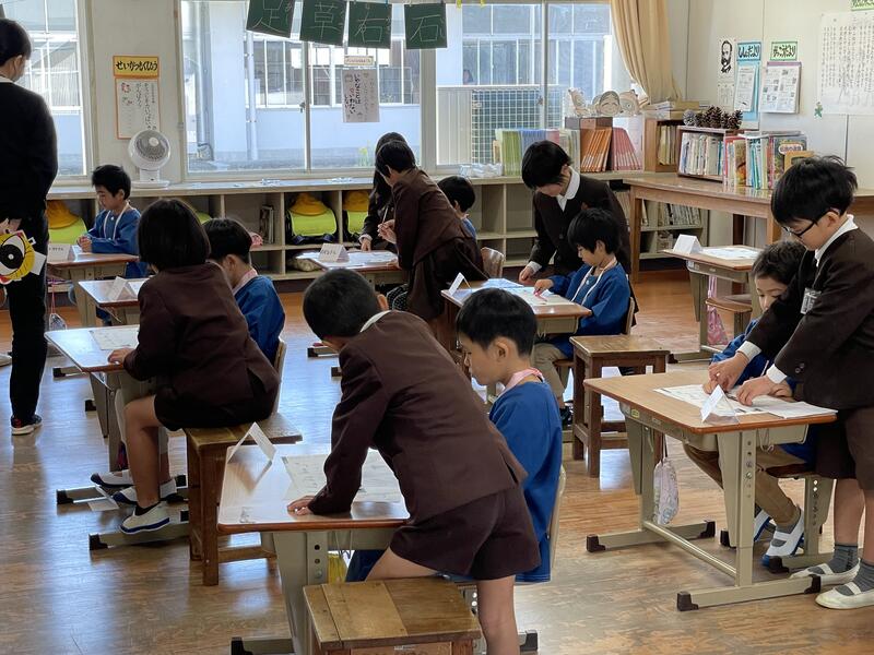 2月16日(金) 来年度の新入生を心待ちにしていた現1年生です。可愛い新1年生のお友達に優しく教えている姿が、とても頼もしかったです。