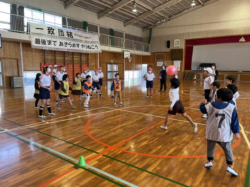 体験入学の後半は、5年生が企画してくれた交流を体育館で楽しみました。