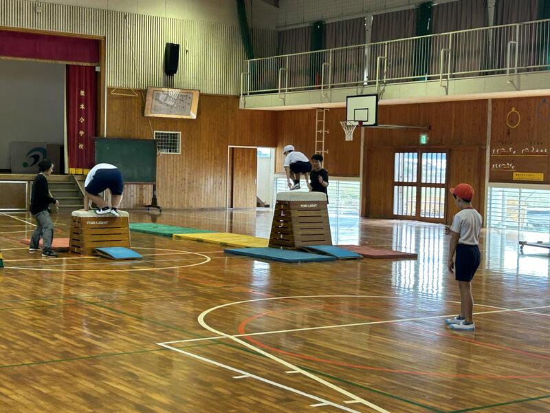 2月20日(火) 栖本中学校の松永先生が、6年生の体育「跳び箱」で指導をしてくださいました。一人一人の目標達成に向けて松永先生からアドバイスをもらい、子供たちは積極的に活動していました。