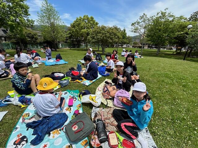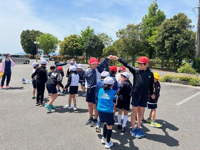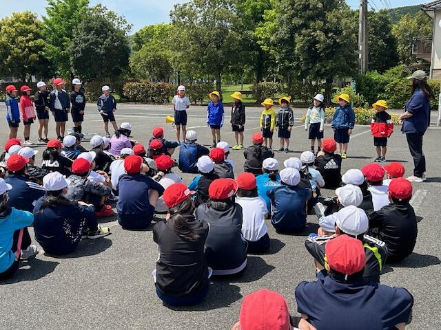 5月2日(木) 今日は絶好の遠足日和になりました。かっぱ街道沿いにある「栖本の宝」を話題にしながら目的地のふれあい公園へ行き、67人みんなで楽しい時間を過ごしました。