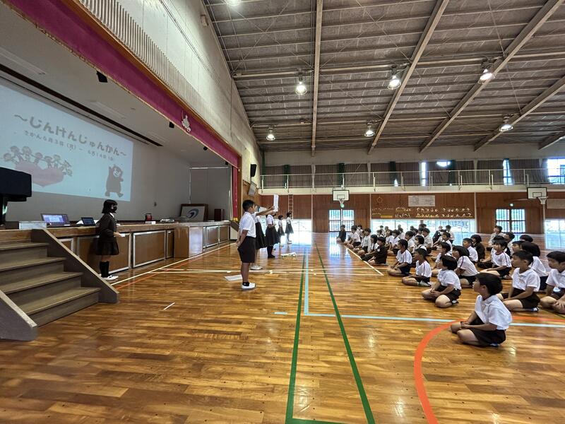 全校児童が体育館に集まり、よりよい栖本小学校を目指して第1回児童総会を行いました。各委員会活動の説明後、全学年から積極的に質問をしたり、各委員会への感謝の言葉を伝えたりする姿に頼もしさを感じました。