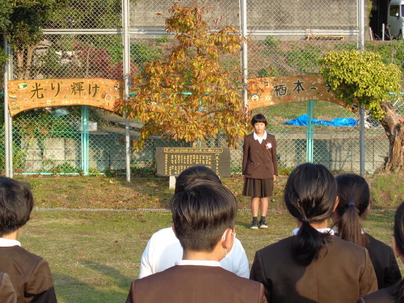 終業式では、各学年の代表が「2学期に頑張ったことと、冬休み・3学期のめあて」について発表しました。