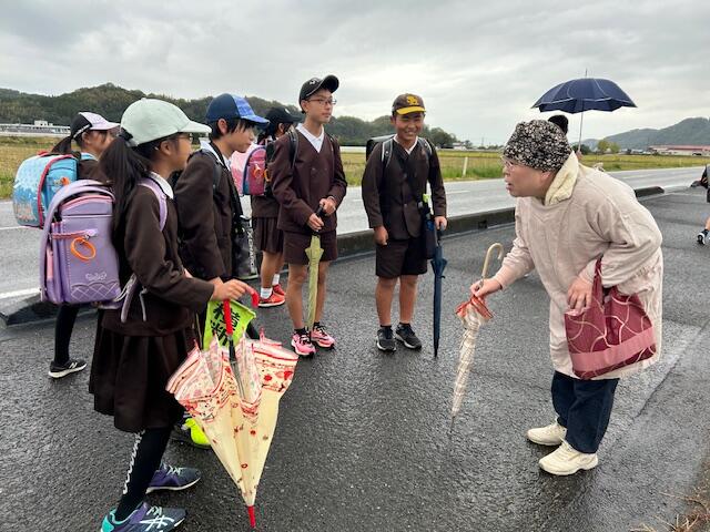 社協主催の高齢者見守り訓練に本校の子ども民生委員の子供たちが参加しました。子供たちは以前受講した認知症サポーター養成講座で学んだことを思い出しながら、下校途中に徘徊されている高齢者へ優しく声を掛け、近くにいらっしゃる民生委員の方へ引き渡しをしました。