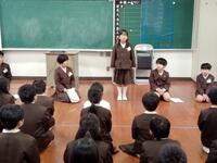 各学年の代表児童による発表は、堂々としていて大変立派でした。冬休みの思い出として、「算数の宿題や大掃除に励んだこと」「家族旅行で楽しかったこと」、そして「50cmもの長いロールケーキを食べたこと」や「地域の行事で木を運んだこと」など、微笑ましく充実したエピソードが披露されました。3学期の目標では、多くの児童が漢字・計算大会での「ダブル満点」を掲げました。また、縄跳びの記録更新や、6年生からは「卒業に向け、相手の目を見て挨拶すること、悔いのない日々を送ること」という力強い決意が述べられました。目標を「~したい」と思うだけでなく、実際に「~する」という行動に移していく。その頼もしい姿に、発表を聞いていた子供たちからは温かい拍手が送られました。