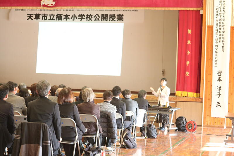 さて、明日12月10日(水)は、本校がこれまで取り組んでまいりました研究の成果を発表する公開授業の日となります。「文部科学省委託リーディングDXスクール事業」天草市教育委員会研究協力校、「くまもとGIGAスクールプロジェクト」、天草体験学習の研究指定校として、「ICTを効果的に活用した探究的な学習の授業づくりについて一緒に考えませんか?」をテーマに開催いたします。特に、東京学芸大学大学院より登本洋子先生にご来校いただき、ご講演を賜ります。これからの時代に求められる「総合的な学習の時間」「総合的な探究の時間」の方向性について、貴重な示唆をいただけることを教職員一同、心待ちにしております。
