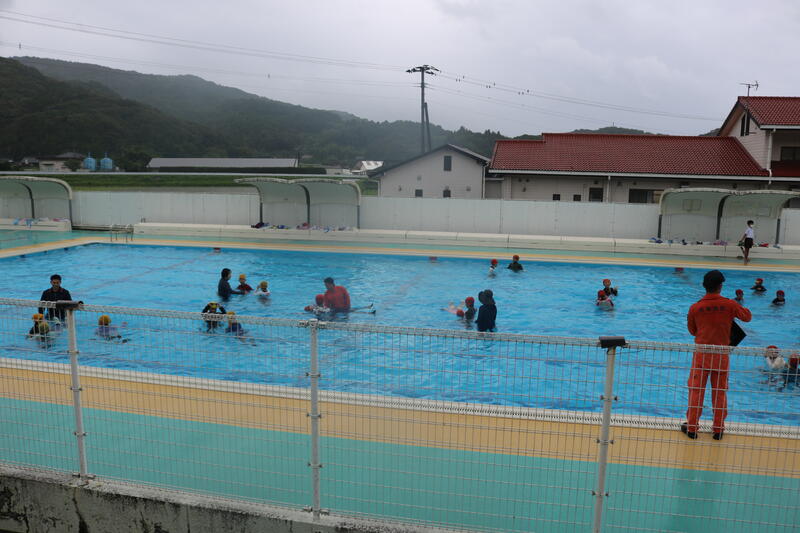 救急救命士の方々をお招きし、夏休み前に毎年行っている着衣水泳教室を行いました。命を守るために大切なこと(浮いて待つこと)を学びました。