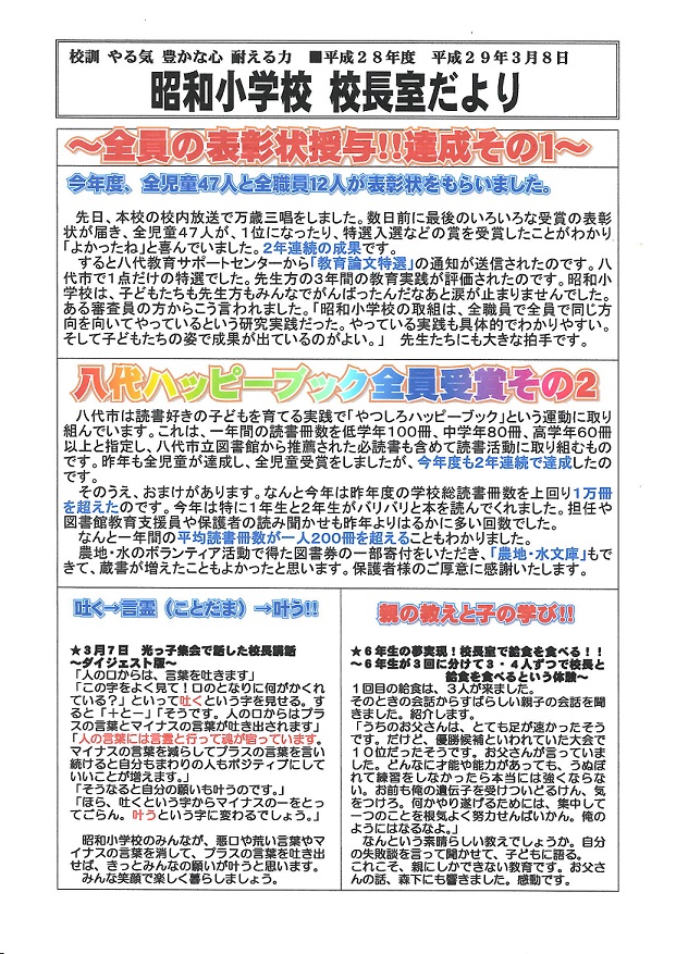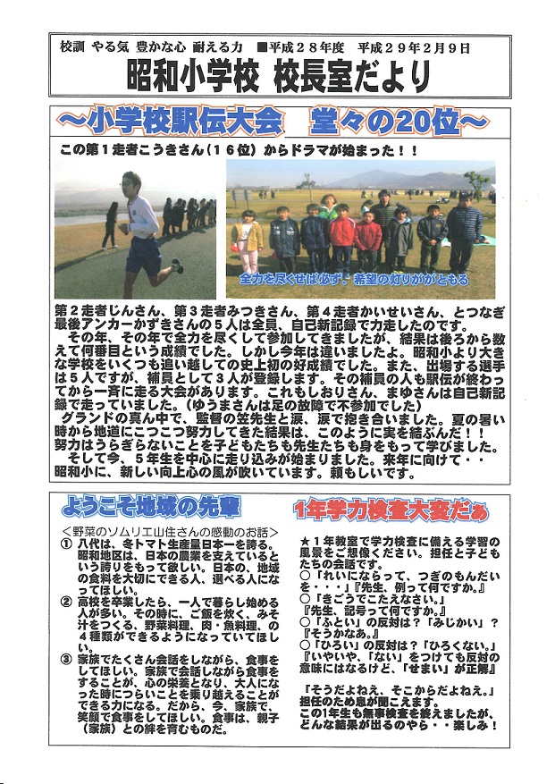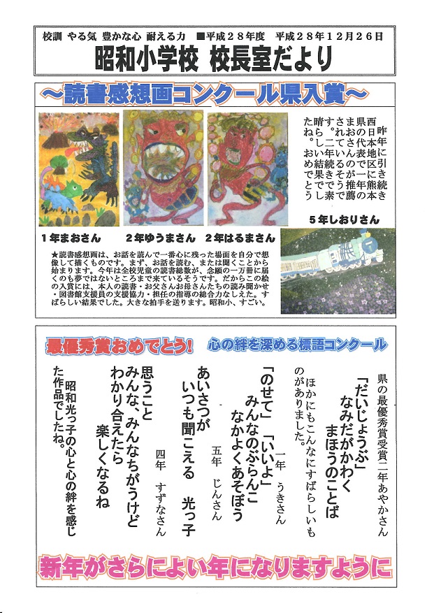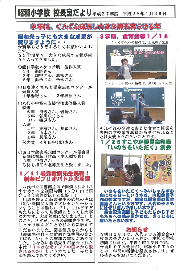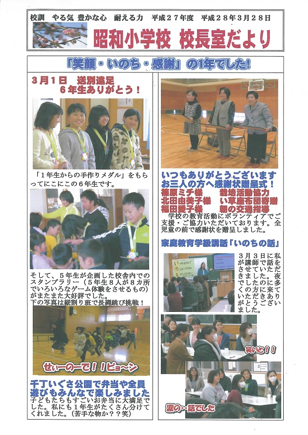 平成28年度校長室だより