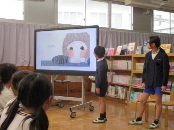 10月2日、お昼の校内放送で学校図書支援員による読み聞かせがありました。9月までは声だけの放送でしたが、今回からは各教室で映像で受信できるようにしました。この日は、古典落語の話の1つで、『目黒のさんま』という本でした。「絵があって、内容がよくわかしました!」と子供たちにも好評でした。今年は、サンマがたくさんとれて安い!ということです。子供たちからも「食べた~い」、という声も多く聞かれました。これからも、季節にちなんだ読み聞かせをしていきます。