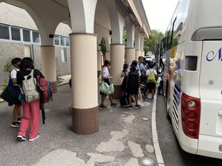 7時30分、集合の後、出発色を行い、たくさんの子供たち、保護者の見送りの中、無事学校を出発しました。