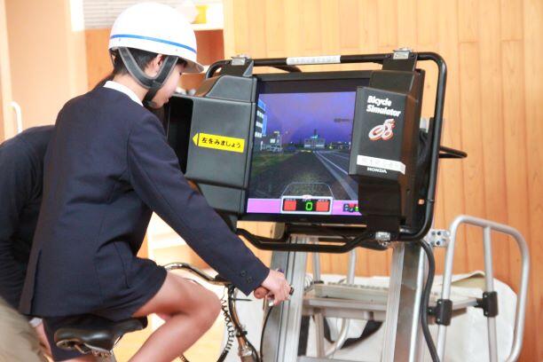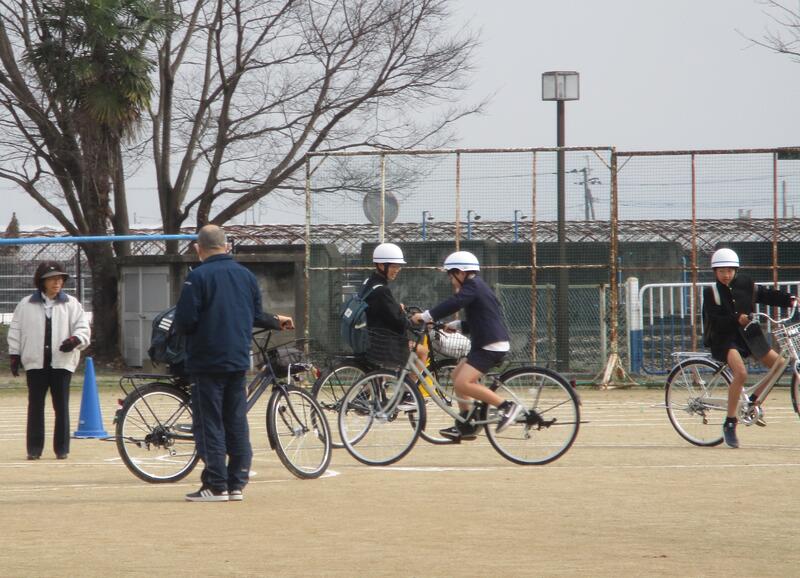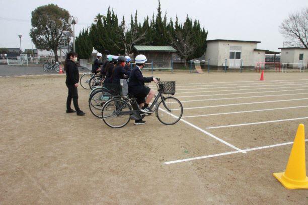 その後、自転車シュミレーターで危険予測を学び、運動場で実際に自転車に乗って練習をしました。ブレーキのかけ方、道路の通行方法など、自他の「命を守る」ためにしっかり学ぶことができた貴重な時間でした。
