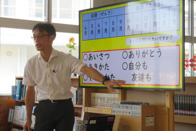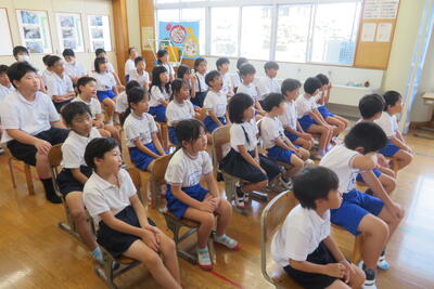 全校朝会で教頭先生より後期の心構えについてお話がありました。