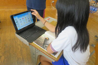 英語教材へのアクセス設定を行いました。教材にはデジタル教科書と学習者用デジタル教科書がありそれぞれが自分の学習速度に合った授業を受けられるようにもなっています。(個別最適な学び)