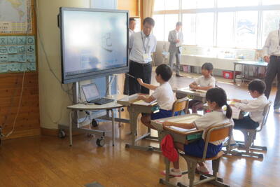 本日は八代市教育委員会より、教育長、教育委員、教育部長、次長、学校教育課長、指導主事の方々14名が来校され授業や給食の様子、学校の環境等を視察されました。