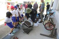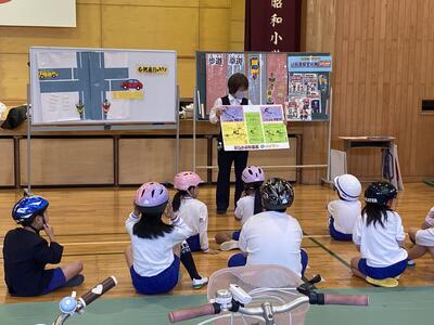 1、2年生は、横断歩道の安全な渡り方、信号機のある交差点での渡り方。3、 4年生はヘルメットの正しい被り方、自転車走行の方法などを学びました。