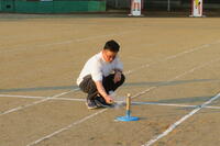 ラインを引くことができ、また、PTAのみなさんに入退場門の設置。三角旗張り・遊具の