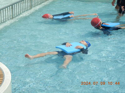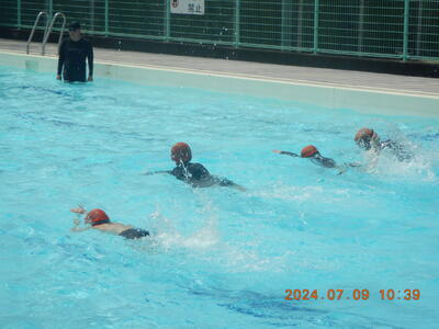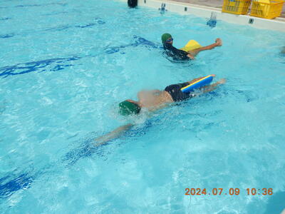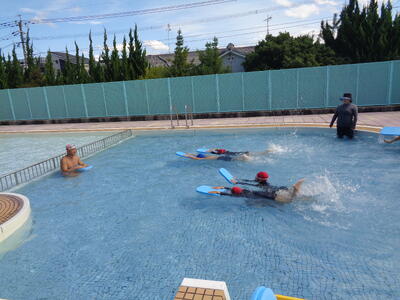 使って水に親しみ、中高学年はクロール平泳ぎを練習しました。