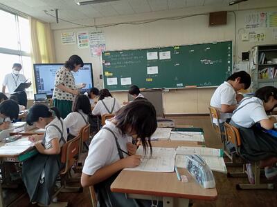 3月末で日奈久小学校に転勤された笹尾先生の研究授業を複式学級のある学校の先生が集まり参観、研究を行いました。日奈久小学校は昭和小学校の次に全学年に電子黒板を導入しました。笹尾先生は昨年度より電子黒板を使った複式授業を行って、八代地域の先駆者として活躍されています。