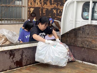 早朝よりPTAの役員さんには各地区の資源を集めていただきありがとうございました。おかげでたくさんのアルミ缶等が集まりました。今後の子供たちの教育活動にいかせればと思います。