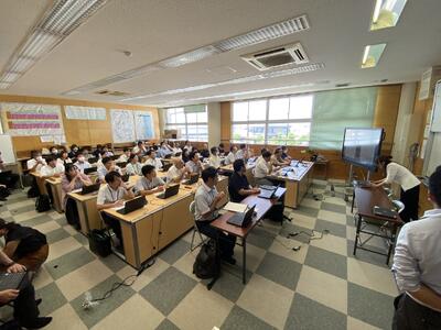 各小中学校から39人、市教育委員会から4人、ICT支援員4人、google社3人がPC室で研修を行いました。