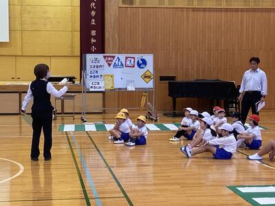 今日は1年生から4年生の交通教室をしました。低学年と中学年にはこれそれぞれ内容で安全教室を行いました。