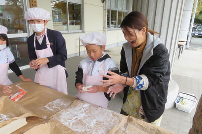 10月に収穫したもち米を使ってお餅を作りました。たくさんの保護者の協力がありとても楽しそうに学ぶ姿がありました。