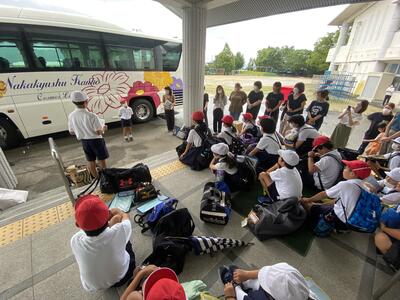 7時30分、集合の後、出発色を行い、たくさんの子供たち、保護者の見送りの中、無事学校を出発しました。