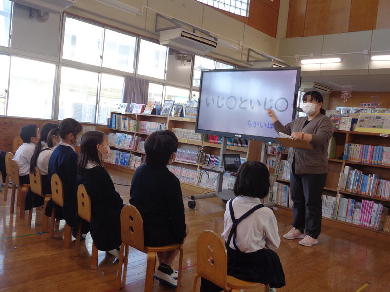 12月12日(金)2時間目に、全校児童が参加して人権集会がありました。人権担当の先生から「いじめといじり」は同じこと、絶対にしてはいけないという話がありました。その後、熊本県人権子ども集会の他校の発表を見ました。同じ小学生がどんな取組をしているのか、伝わってきました。