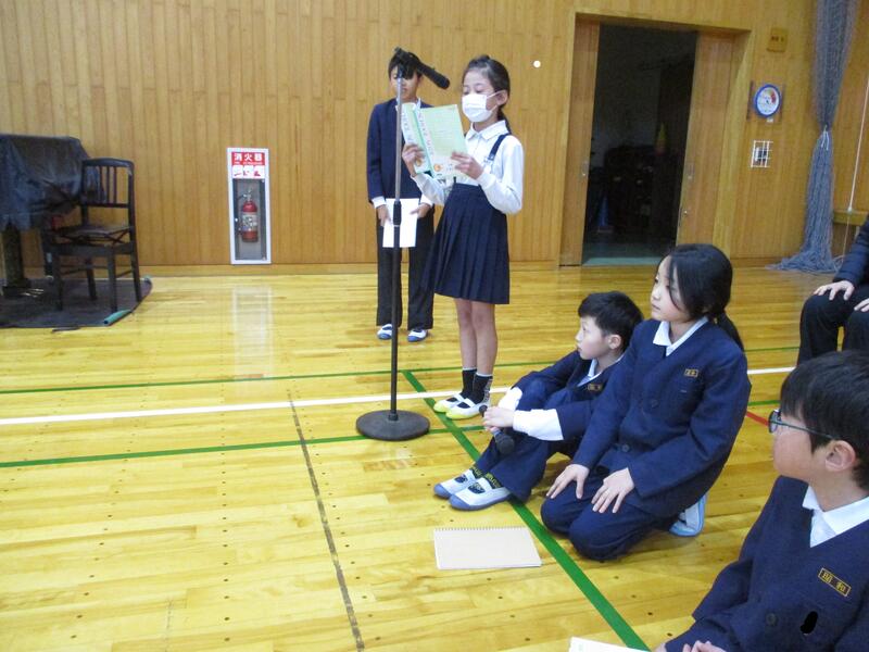 2月27日(金)、3年~5年生までの新しい運営委員の児童が、児童昇降口前で朝のあいさつ運動を行いました。あいさつは、「あかるく、いつも、さきに、つづける」ことが大切ですね。頼もしい新役員の笑顔と声に、やる気を感じました。また、3月6日(金)の6年生を送る会では、楽しくスムーズに進行することができました。1年間よろしくお願いします。