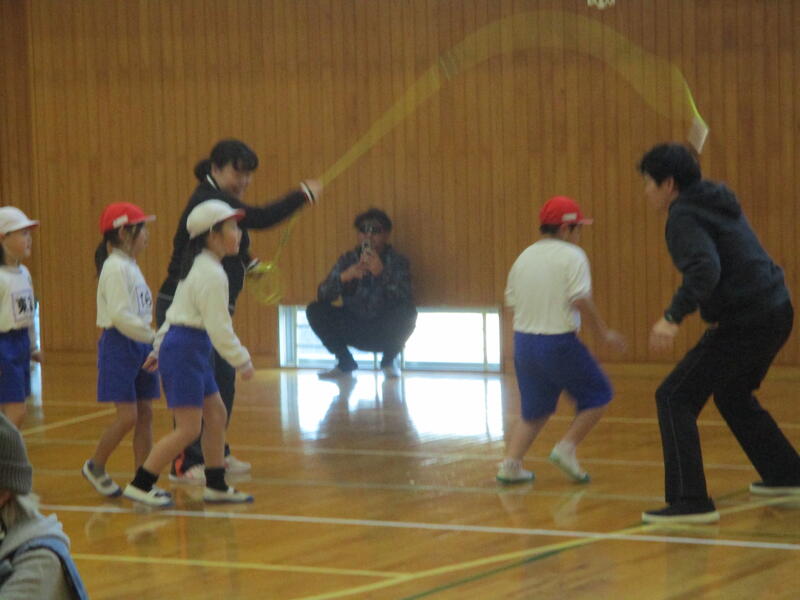 そして、一番盛り上がったのが学年対抗長縄です。2分間で何回飛べるか、低・中・高学年対抗で競いました。どの学年も真剣に取り組み、僅差で中学年が優勝しました。みんなで心をひとつにして飛ぶ姿がすばらしかったです!平日にもかかわらず、たくさんの保護者に応援にきていただき、ありがとうございました。