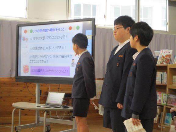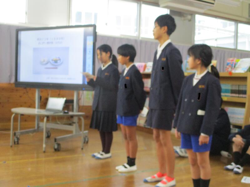 1月27日(火)の光っ子集会では、健康安全委員会による「給食週間」にちなんだ発表がありました。給食の歴史や西部給食センターのことなどを、画像やクイズ形式で楽しく学習しました。子供達からは、「給食センターの方に感謝して、栄養満点の給食を残さず食べたい。」という感想も聞かれました。給食のありがたさを改めて考える機会となりました。