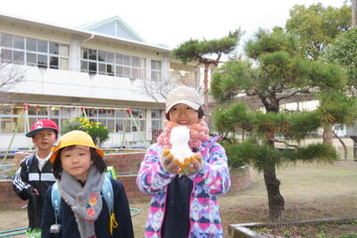 朝わずかに雪が積もっていました。寒いにもかかわらず