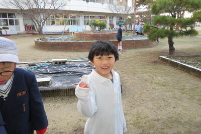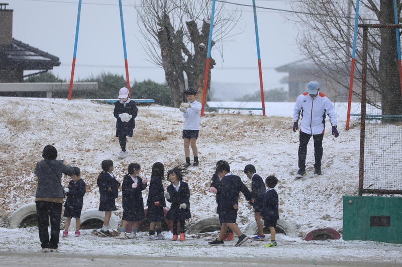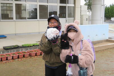 朝わずかに雪が積もっていました。寒いにもかかわらず