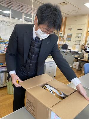 明日朝臨時集会で子供たちに渡します。