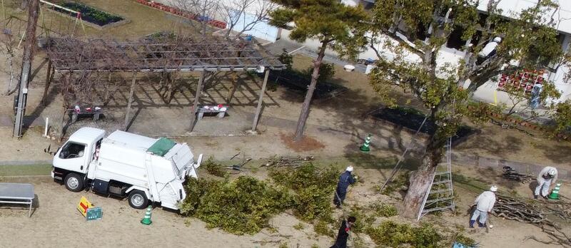 たくさんの緑に囲まれた昭和小学校ですが、気が大きくなりすぎて敷地外に出たり、枯れたり、枝が落ちたりと、手入れの必要が出てきましたので、本日伐採作業を行いました。