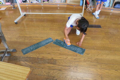 3~6年生に机の面積を広げる部品を取り付けます。(5年生は来週)
