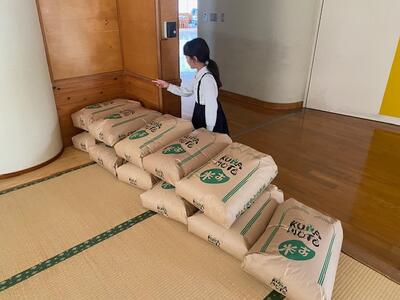 PTA会長の江崎さんが、乾燥したお米を届けてくださいました。