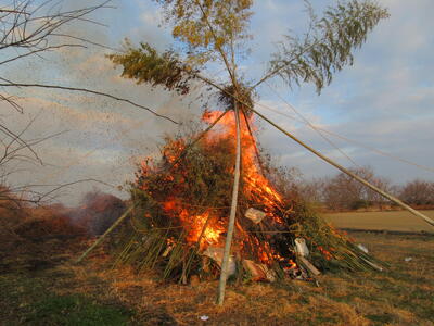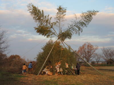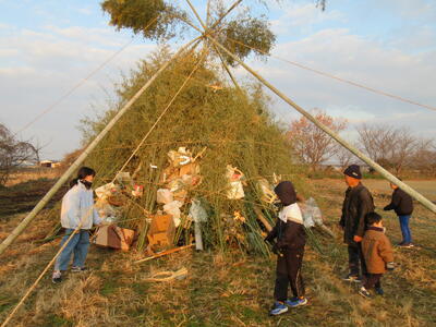 どんどやは、正月飾りを目印に家にきてくださった年神様を、正月飾りを燃やした煙とともに見送ったり、 縁起物を燃やして、五穀豊穣、商売繁盛、家内安全、無病息災を願う地域行事です。昭和小校区では、地域の伝統行事として毎年行われています。