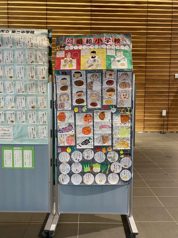 市役所1階で市内の幼小中学校の作品が展示してあります