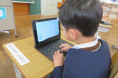 昔は紙に記入し、集計とりまとめを人の力でしていたのですが、現在は子供達もタブレットで2次元コードを読み取り回答しています。1年生も慣れた手つきでカメラを起動し、両手でタッチパッドを使って入力できています。