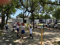 スポーツを通して、他校との交流行い、親睦を図るために、八代小学校の6年生とソフトバレーボールを楽しみました。