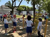 低学年と一緒に、5年生が作った輪投げやマジック・ボーリング・的当てなどで楽しく交流をしました。