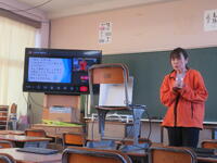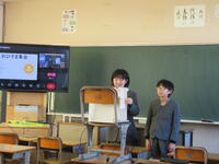 校長先生より、「どうして勉強をするのか」について、コップの水を使って、話がありました。また、給食週間の取組として健康委員会から、ユニセフ募金や書き損じはがき集めの取組としてたいよう委員会からの発表がありました。