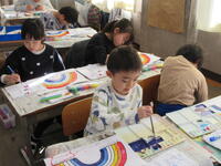 2年生の図工で、初めて絵の具を使いました。
