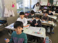 保護者への説明会の時間に、新入生は学校見学や交流活動、授業体験をしました。5年生がしっかりお世話をしてくれました。