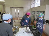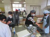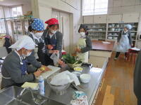 家庭科「ゆでる調理でおいしさ発見」では、ほうれん草とジャガイモをゆでていただきました。たいよう応援隊の保護者の方がお手伝いに来てくださり、調理実習をよりよく行うことができました。